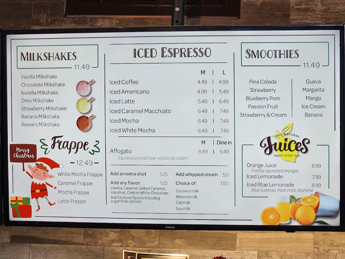 “ Service is great, you choose the atmosphere whether you want to chill at the dining area, have drinks in the bar or have fun out in the patio. We chose to chill and drink coffee and we ordered a Turkish coffee and a cappuccino and they were delicious, best coffee I’ve had in a while. The desserts are mouthwatering! Definitely a go to if you are in the area. ”